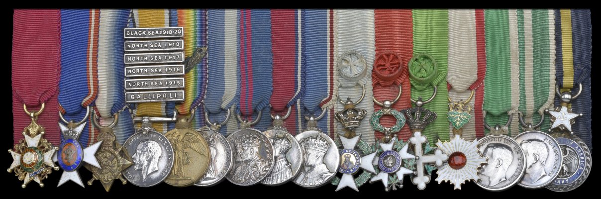During the Boxer Rebellion, he was Commander in H.M.S. Iris. Promoted Captain in 1903, he commanded the battleships Commonwealth in 1909 and Britannia in 1910. He was appointed Director of the Operations Division, Admiralty War Staff in 1912 and A.D.C. to the King in 1913 and was awarded the C.B. in the King’s 1913 Birthday Honours List. Appointed Commodore 1st Class, as Admiral of Patrols in May 1914 and Rear-Admiral in August 1914.In September 1916 he was appointed Senior Officewr in charge of the Naval Establishment at Malta. After the war, further promotions followed, being appointed Vice-Admiral in 1919 and Admiral in 1924. He was placed on the Retired List in 1921. He died on 16 September 1948.