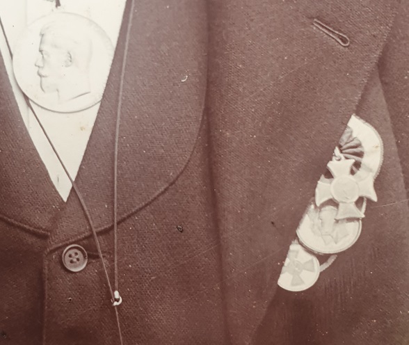 Лежит у меня фотография в папке как пример ношения усердия, а также как и пример ношения той же гессенской выслуги, той же прусской прусской медали ордена Красного орла.